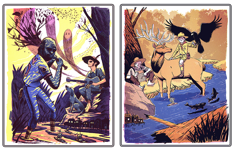 Fellow Art Center alumni and friend, artist Jeff McMillan, and I decided to make a diptic for a Giant Robot’s Printed Matter show. These are 3 color Risograph prints. If you couldn’t tell, Jeff’s is on the left and mine is on the right.