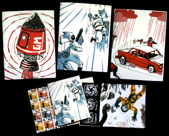Hello to all of my millions and billions of followers. Lord Awesome has returned with lavish bounty. Okay, well maybe not millions of billions, or any lavish bounty… but I’m still Lord Awesome! AND I still have tons to say, but first a riddle: What primate has two opposable thumbs and likes making and selling prints at the Alternative Press Expo in San Francisco? Gary Musgrave, that’s who! It was truly a great experience. I had the luxury of sharing my table with art pals: Ken Tanaka, Jesse Fillingham , and James Chong. As you can see in the photo, my art cohorts are incredibly tall. We had an incredible time and there were lots of pretty girls to look at. My roommate and pal, illustrator Cam Floyd also rolled out to show support and scope the SF zine scene. In addition to all the millions and billions of fans I have at home, it was nice to find out that I have an equal number of fans in the Bay Area too. My free postcards were the toast of the weekend. It was like I was just giving them away. I made two new prints for A.P.E. and now they are available in the “Buy” section of my site as well as three booklets that have a bunch of printing, drawing, painting, and photos in them.