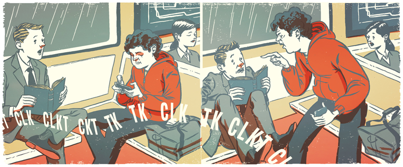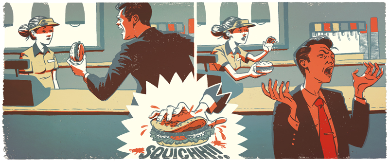 I had the opportunity to work with AD Peter Hausler the other day.  He asked me to do a couple of illustrations for the Wall Street Journal.  The illustrations were about road rage taking other forms.  It was a fast turn over and I didn’t get to sleep much, but my students seem to like hearing about the physical punishments I go through to get a job done.  Needless to say, I was very unhappy with my work all the way to about 90% complete, then suddenly, “There it is!” happens.  which is pretty much every job I do.  It’s like every illustration I attempt is an ugly duckling until I’m almost finish and I suddenly realize that I really dig it.  Go buy a copy of the Wall Street Journal today!