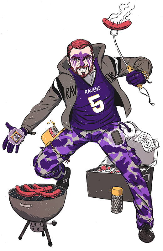 This illustration was for Baltimore Magazine on the tailgate party must have essentials of any true Ravens fan.
