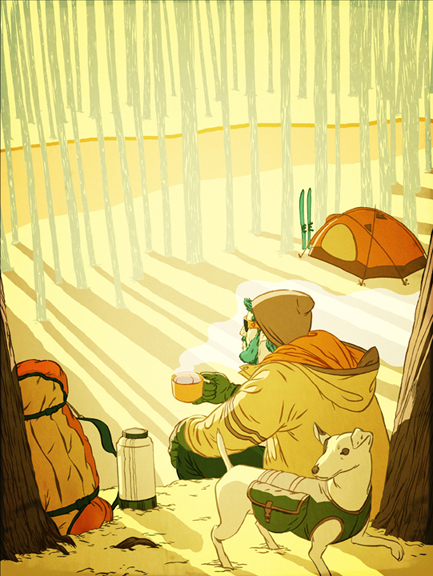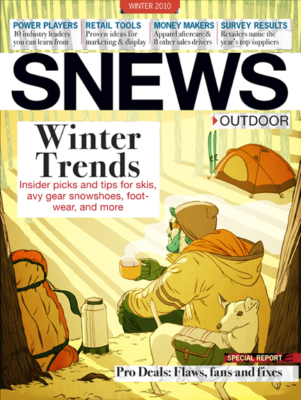 Almost a year ago I was asked by the folks at Backpacker Magazine to do the cover of their winter catalog “SNEWS”. I obviously jumped at the opportunity because I like to draw and getting the cover of anything feeds my ego. I like it when everyone knows I’m awesome. It’s a hole that can’t be filled, a monster with and endless appetite, a vampire trying to comb his hair with a mirror. Accept me! The art director told me what they had in mind and sent me some samples of past covers so I went to work. One of the things I realized about illustration on this assignment was that the work that I do, or any illustrator for that matter, is more than helping someone communicating their idea. When an art director chooses an illustrator, they are also choosing that illustrator’s personality and experiences. I was really proud of this image. What made it special for me was that I was able to draw my dog Rebo into it. I had to put Rebo to sleep a few months before I got the assignment and this was a great way to remember him. Rebo was on the cover of newsstands everywhere! I couldn’t be happier. So I feel like Backpacker could have picked any number of illustrators to do the cover, and I’m sure each of them would have done something personal, but they didn’t. Backpacker chose me and I chose to have my dog on an adventure playing in the snow.