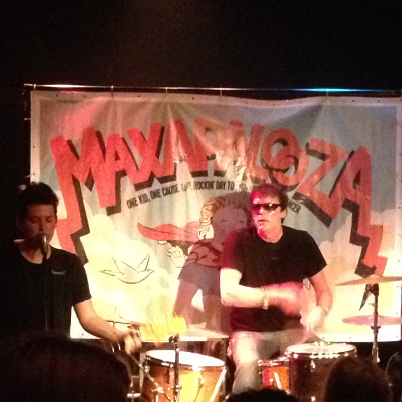 Who doesn’t like the Ramones? I mean, even the people who don’t know who the Ramones are wear their t-shirts. I was ecstatic to snap this shot of the Ramones drummer Richie Ramone banging away in front of a giant backdrop with one of my illustrations on it. First the Descendents, now the Ramones! I love what I do for a living!!